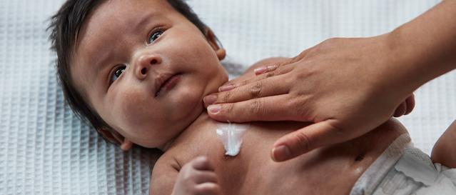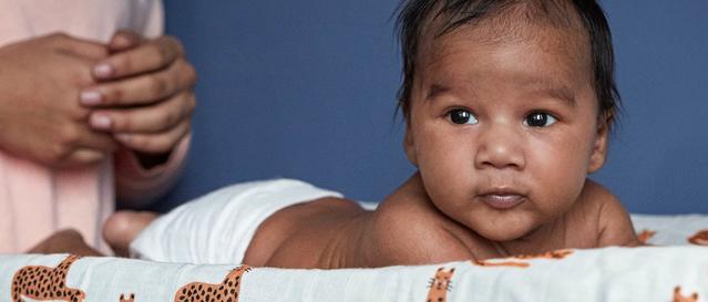 Give baby a gentle newborn tummy massage after their umbilical cord has healed. Make gentle contact with baby’s tummy with a reassuring and relaxed hand. If baby is happy, make gentle paddling strokes with one hand following the other.